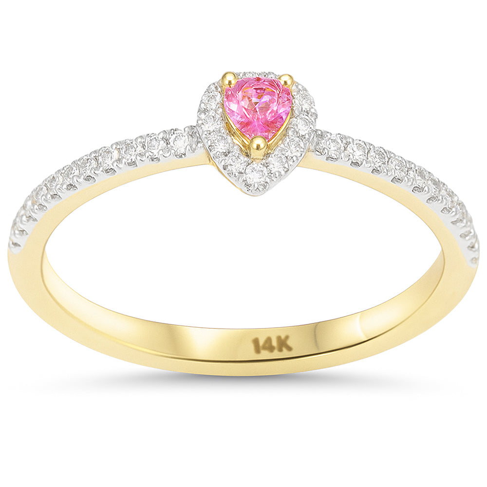 SPECIAL! .30ct G SI 14kt Yellow Gold Pear Pink Sapphire & Diamond Ring Size 6.5
