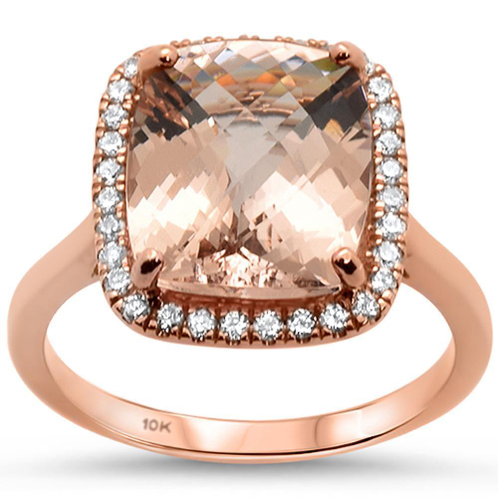 SPECIAL! 4.61ct 10k Rose Gold Diamond & Cushion Cut Morganite Gemstone Ring