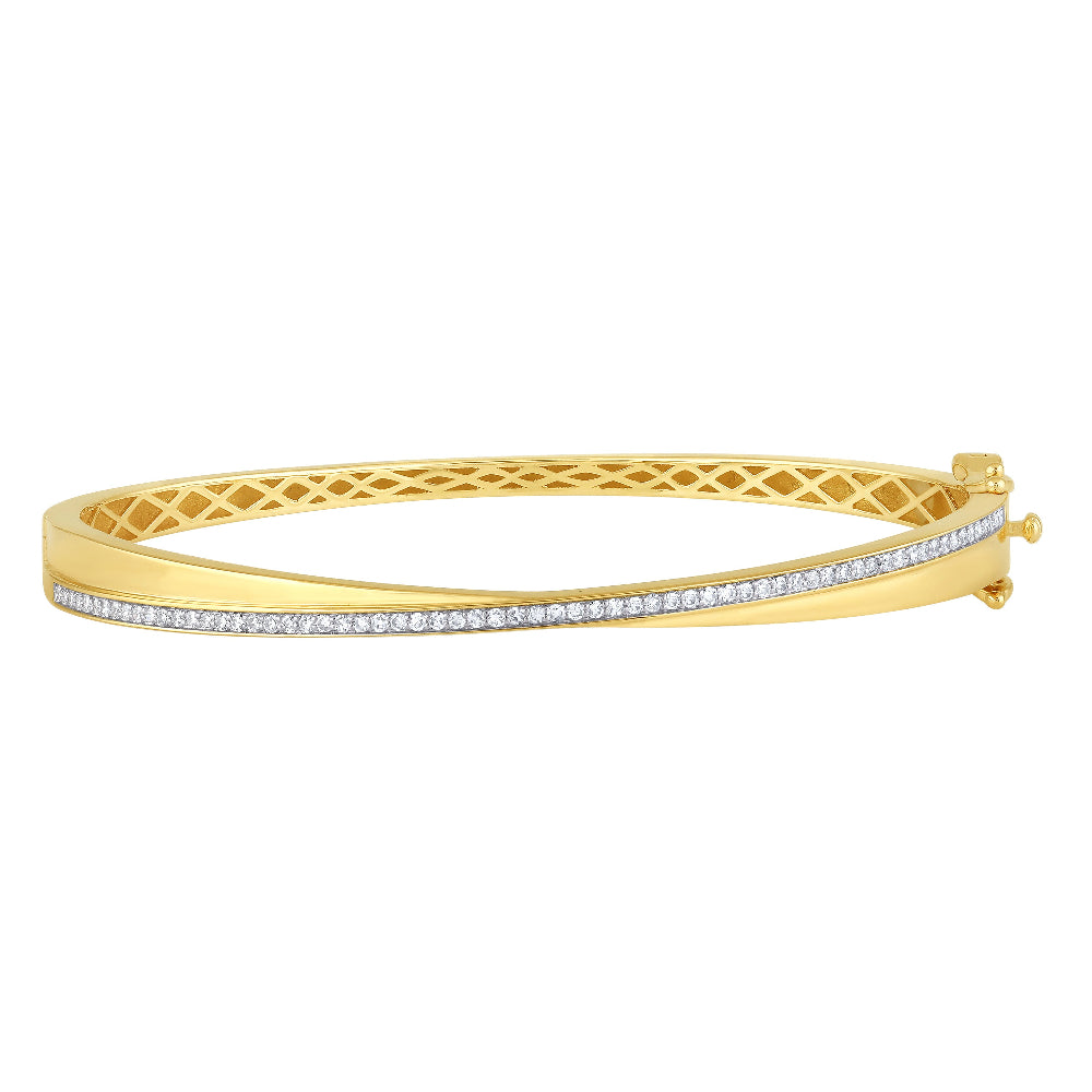 SPECIAL!.33ct G SI 14K Yellow Gold Diamond Crossover Bangle Bracelet