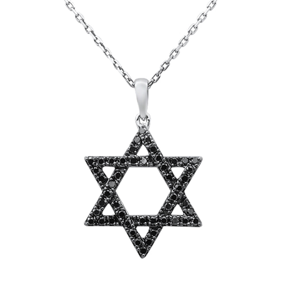 SPECIAL! .35ct G SI 14kt White Gold Black Diamond Star of David Pendant Necklace 18" long
