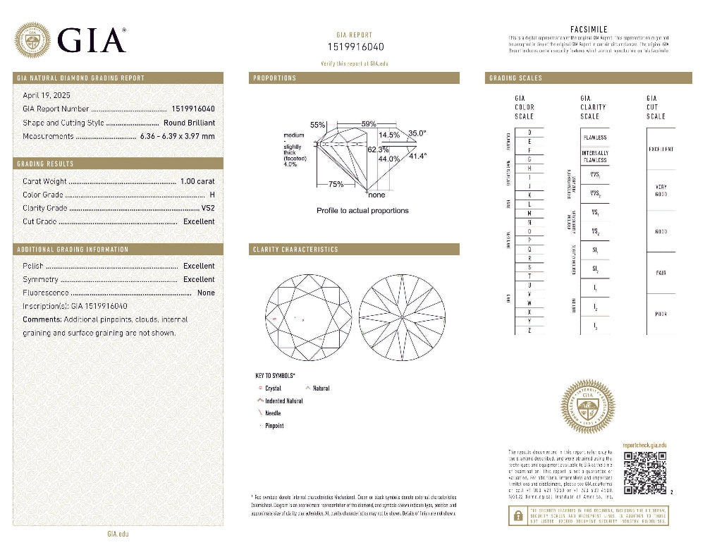 - Diamond Carat Weight: 1.00ct GIA CERTIFIED#1519916040