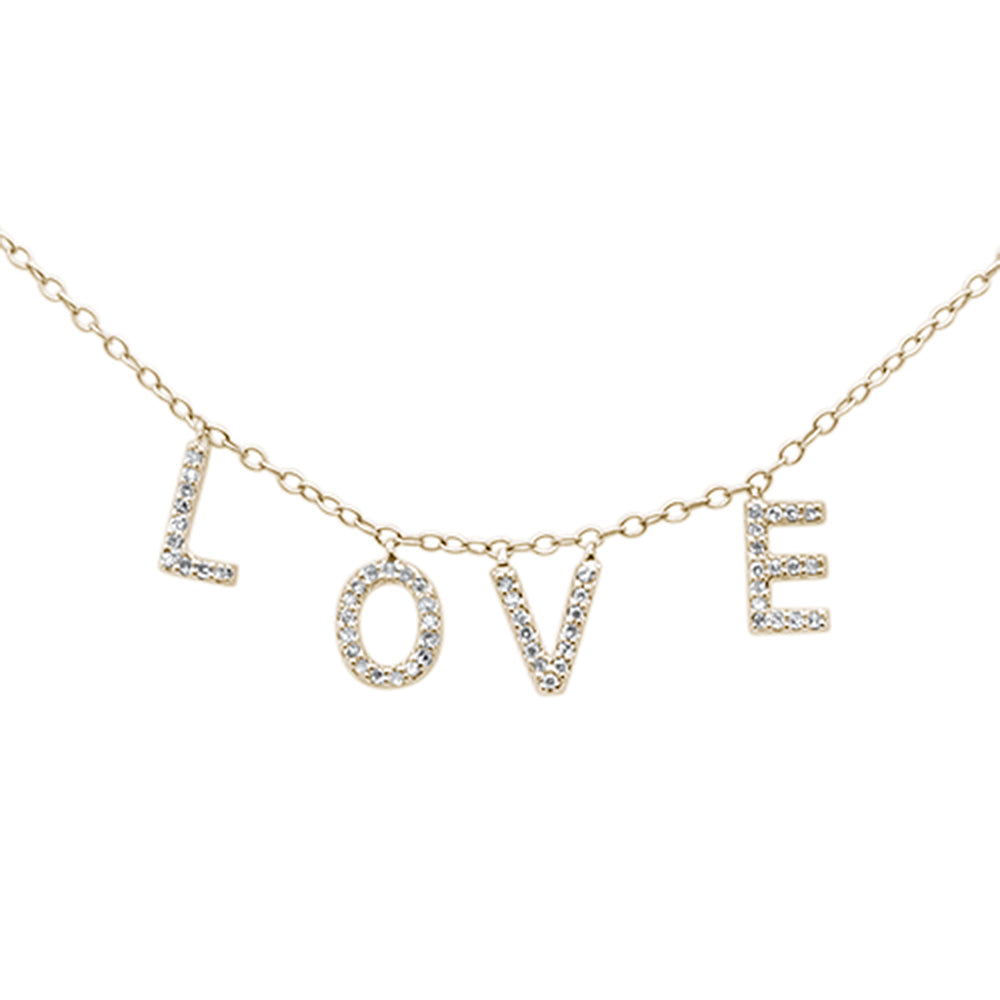 SPECIAL! .14ct G SI 14K Yellow Gold Diamond Heart "Love" Script Letters Pendant Necklace 18" Long