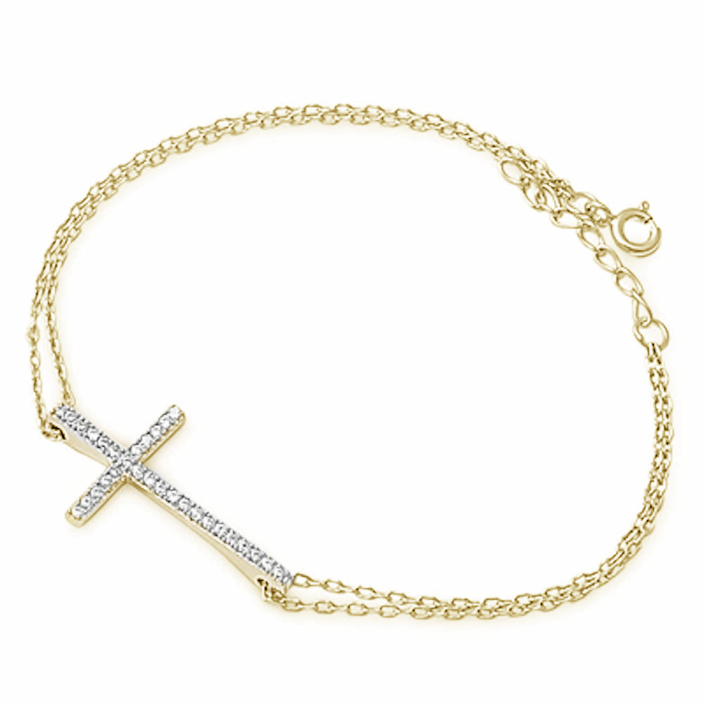 DIAMOND CLOSEOUT! 14KT Yellow Gold .12ct Cross Diamond Bracelet