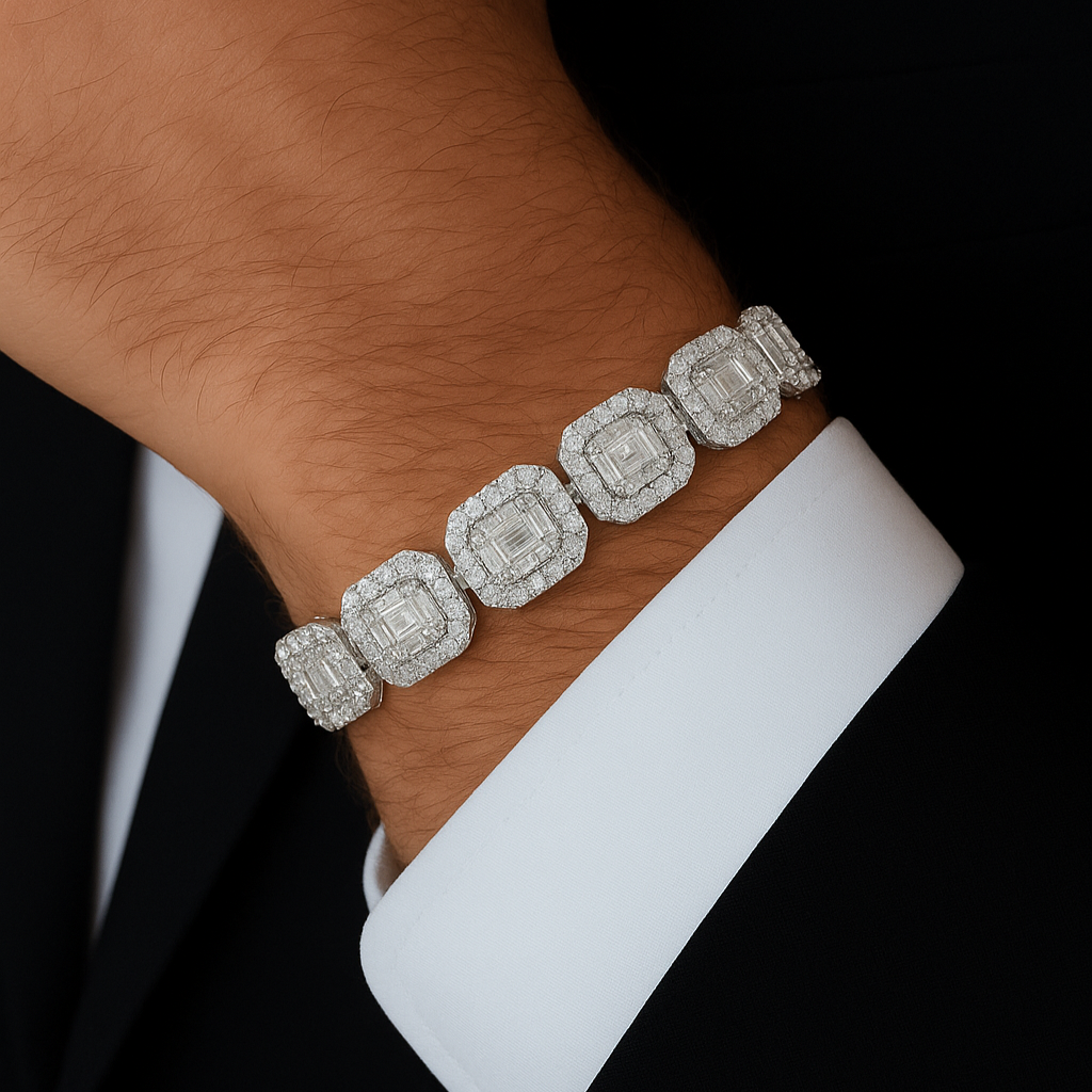 DIAMOND CLOSEOUT! 12mm 15.50ct G SI 14K White Gold Round & Baguette Diamond Bracelet 8.5"