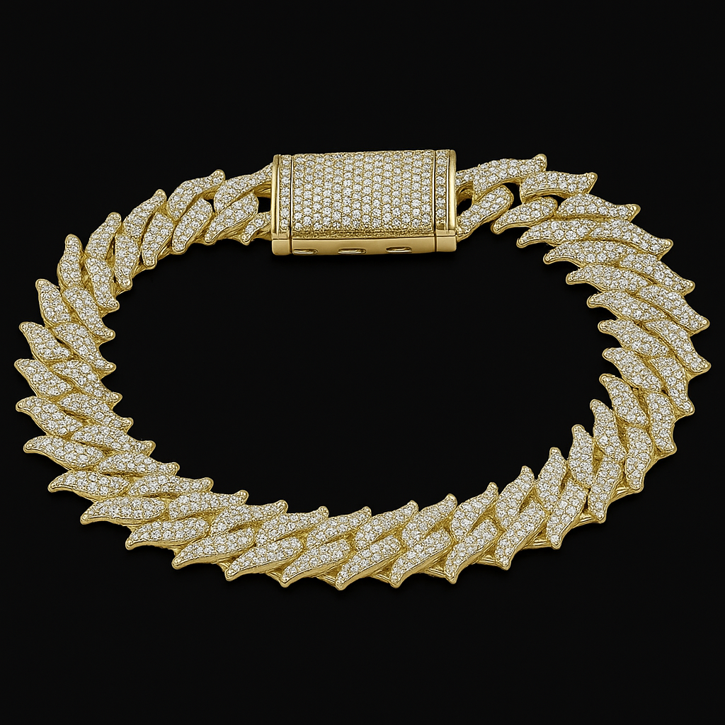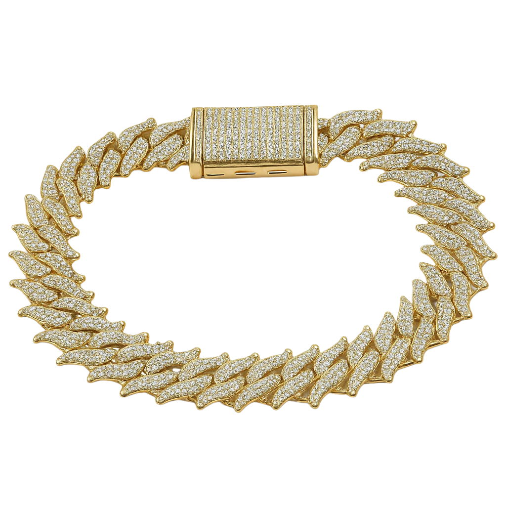 DIAMOND CLOSEOUT! 18MM 12.82ct G SI 14KT Yellow Gold Round Diamond Spiked Cuban Bracelet 8.5"