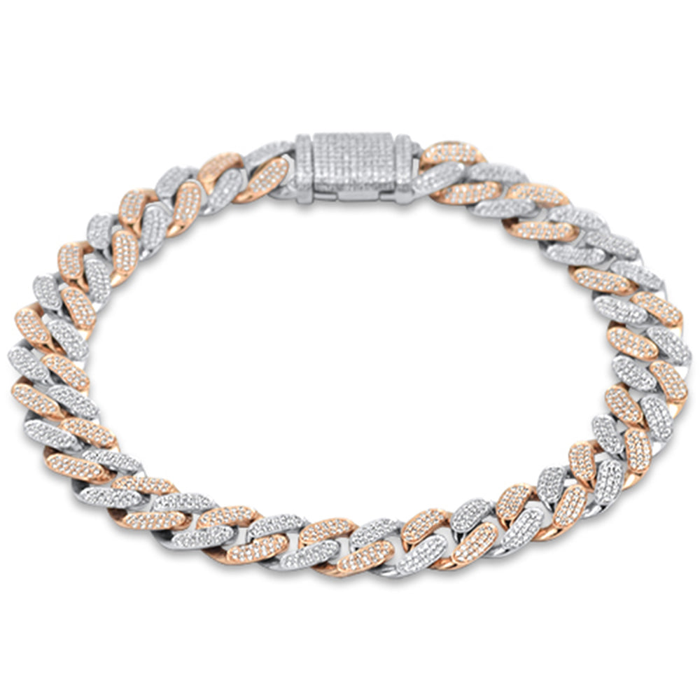 SPECIAL! 9mm 1.34ct G SI 14K Two Tone Rose & White Gold Diamond Round Cuban Bracelet 8" Long