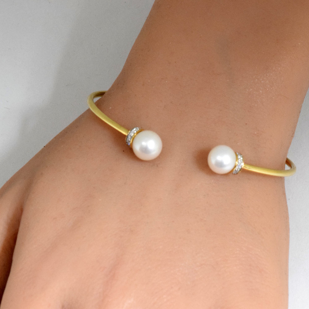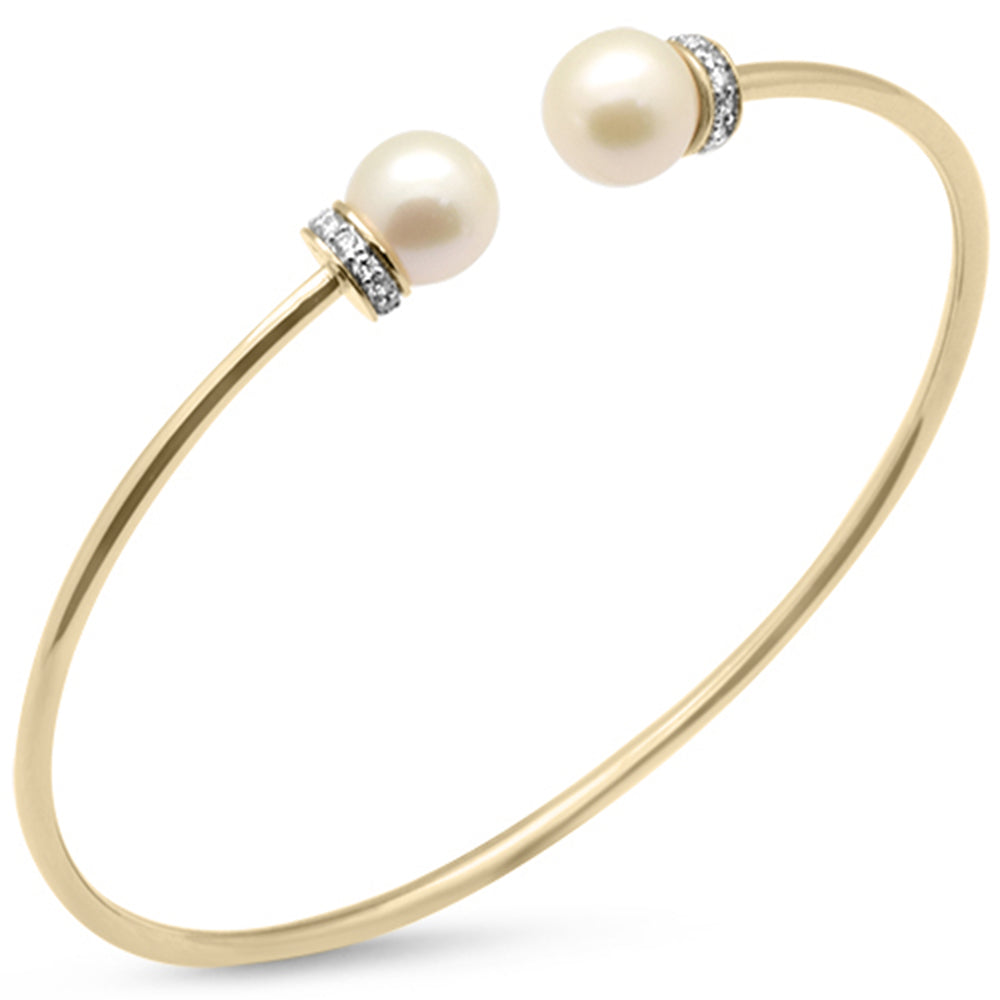 SPECIAL! .24ct G SI 14K Yellow Gold Diamond Pearl & Diamond Bangle Bracelet