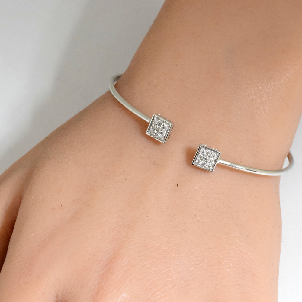 DIAMOND CLOSEOUT! .29ct G SI 14K White Gold Diamond Square Open Bangle Bracelet