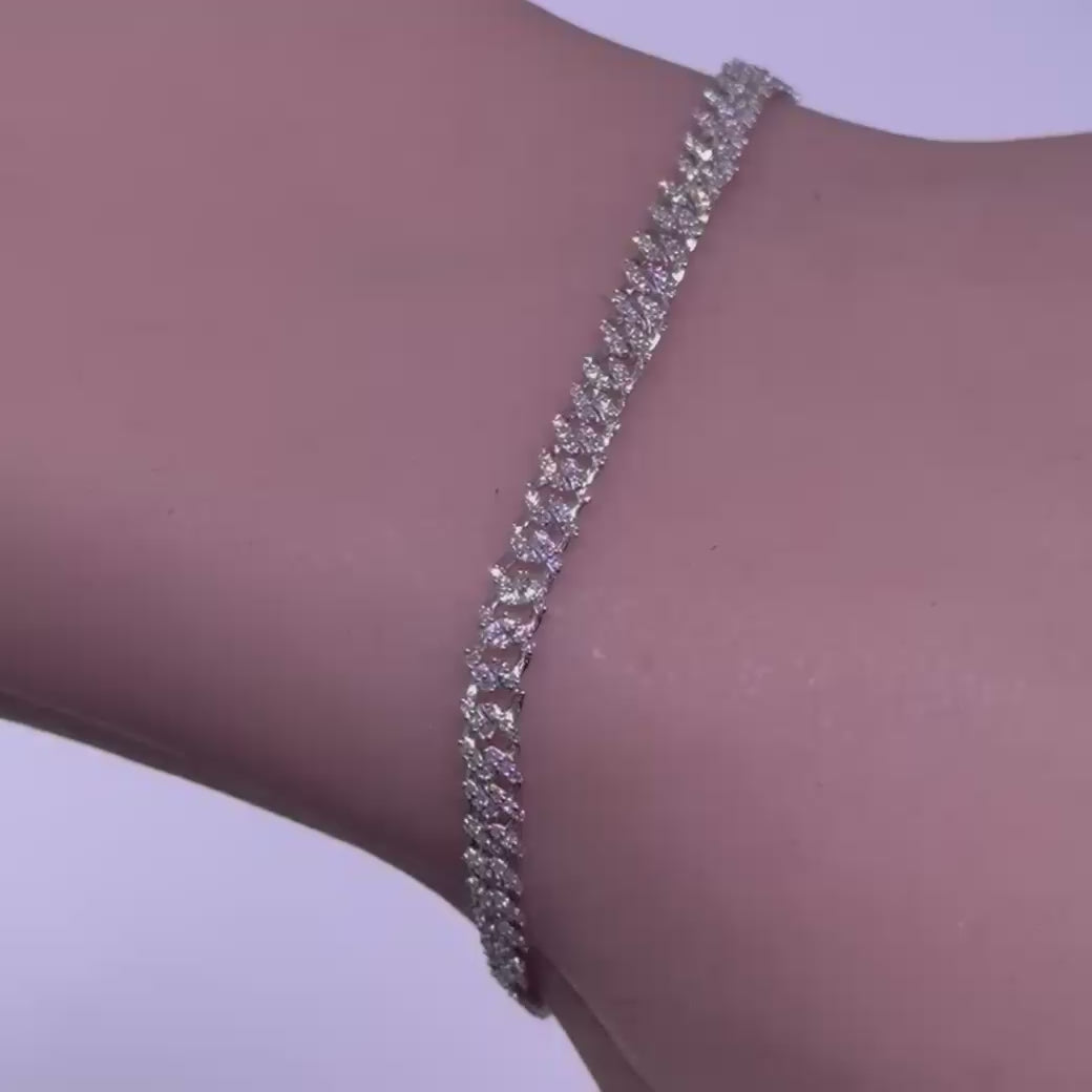 SPECIAL! 3MM .74ct G SI 14K White Gold Diamond Round Cuban Bracelet 7"