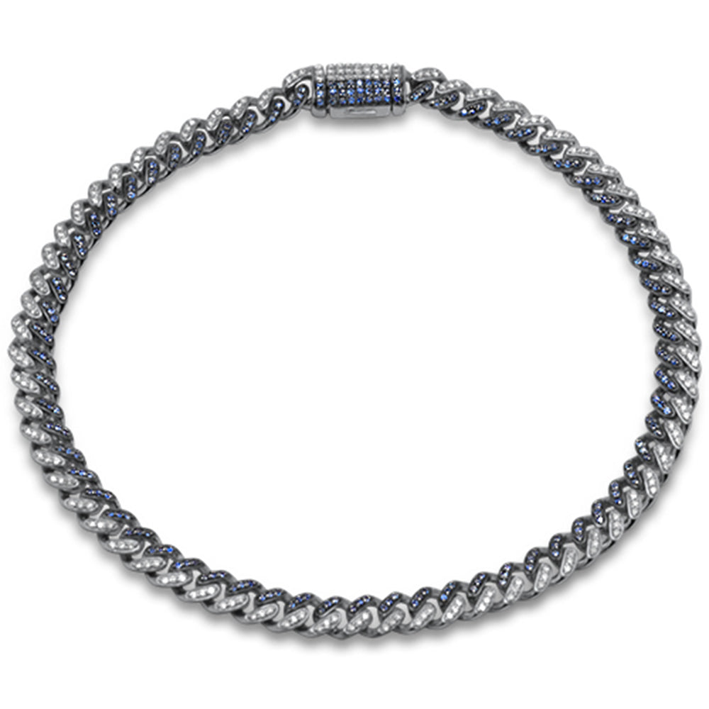 SPECIAL! .91ct G SI 14K White Gold Diamond Blue Sapphire Gemstone Cuban Bracelet 7" Long