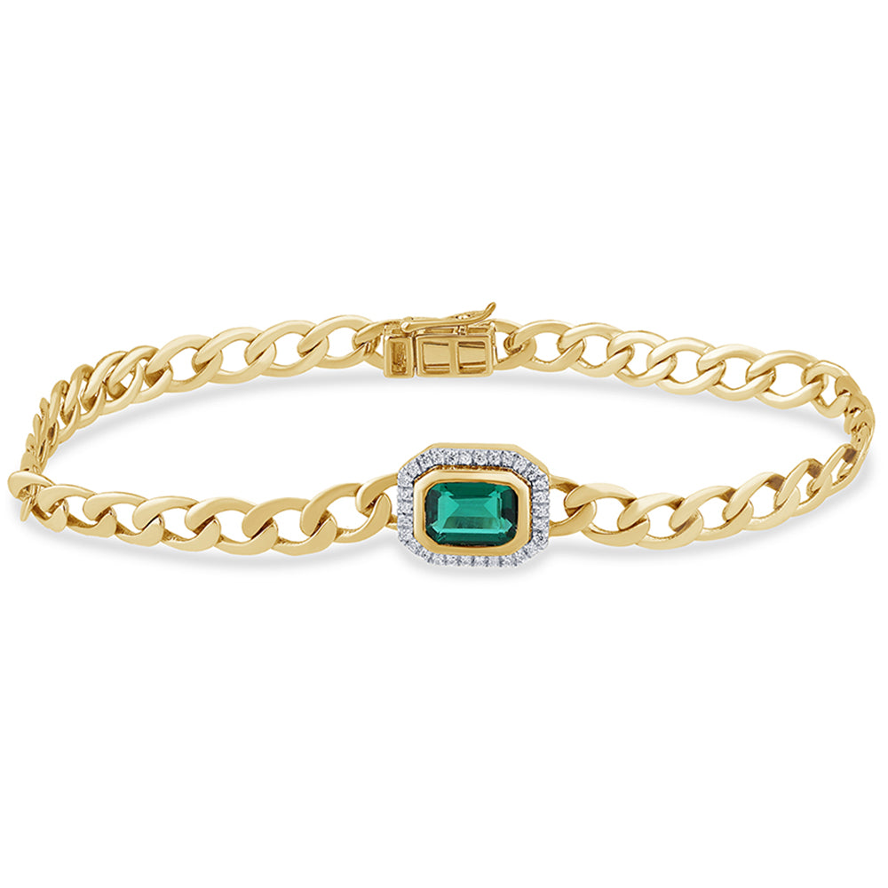 SPECIAL! 2.04ct G SI 14K Yellow Gold Diamonds & Emerald Gemstones Cuban Bracelet 7" Long