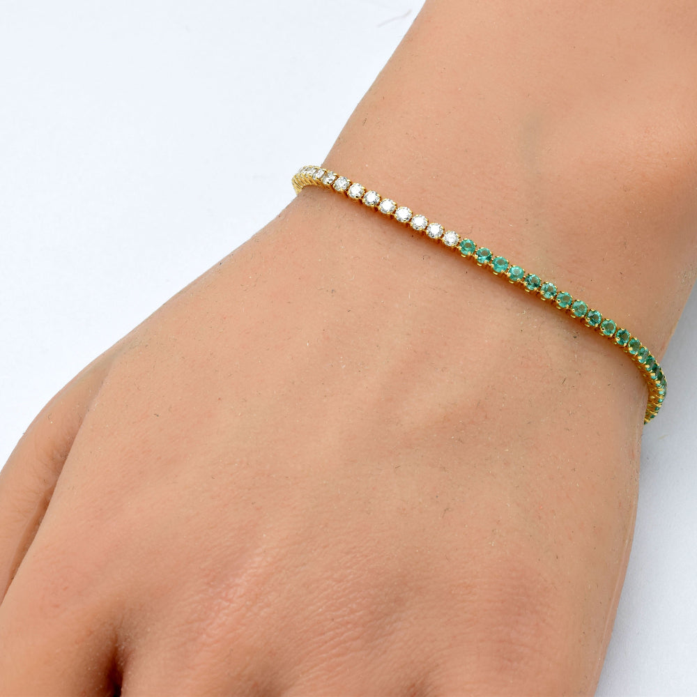 SPECIAL! 3.14ct G SI 14K Yellow Gold Diamond & Natural Emerald Gemstones Tennis Bracelet 7" Long
