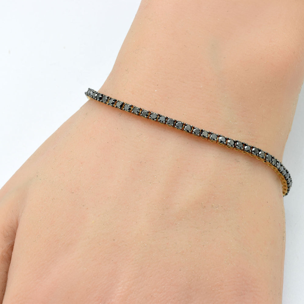 SPECIAL!3.15ct G SI 14K Yellow Gold Diamond Black Diamond Tennis Bracelet 7" Long