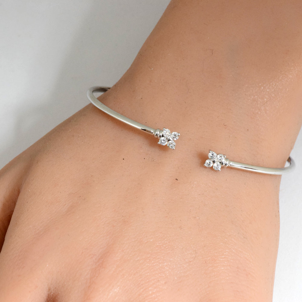 SPECIAL! .40ct G SI 14K White Gold Diamond Flexible Flower Open Bangle Bracelet