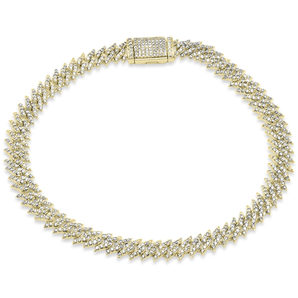 SPECIAL!7MM 2.22ct G SI 14K Yellow Gold Round Diamond Spike Cuban Bracelet 8" Long