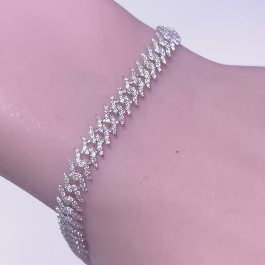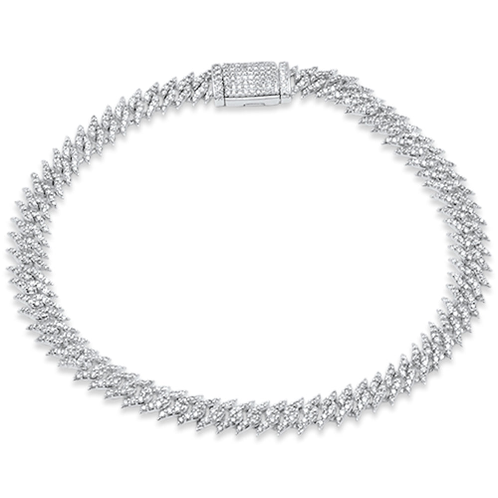 SPECIAL!2.37ct G SI 14K White Gold Round Diamond 7MM Spike Cuban Bracelet 8" Long