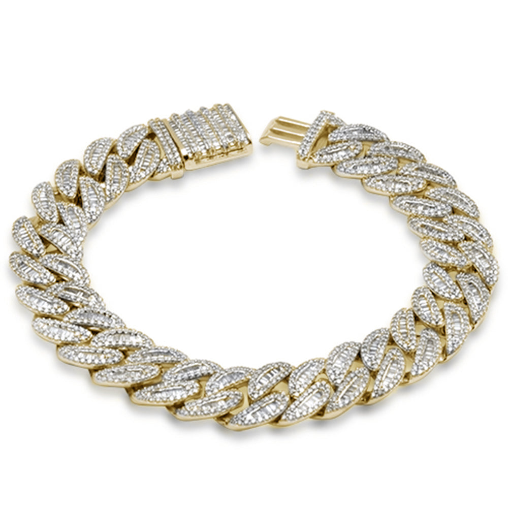 SPECIAL! 9mm 3.46ct G SI 14K Yellow Gold Round & Baguette Iced Out Diamond Cuban Bracelet 8" Long