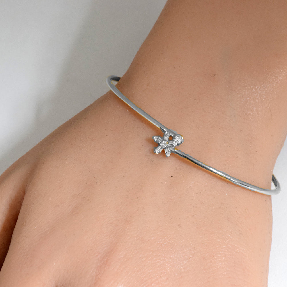 SPECIAL! .14ct G SI 14K White Gold Diamond Flower Open Bangle Bracelet