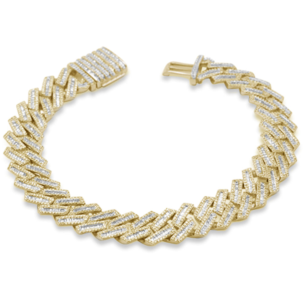 SPECIAL! 11mm 5.19ct G SI 14K Yellow Gold Round & Baguette Diamond Square Cuban Bracelet 8" Long