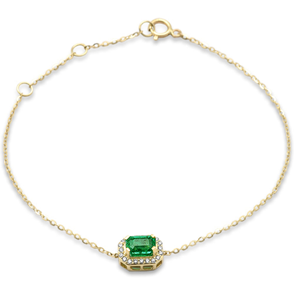 .65ct G SI 14K Yellow Gold Diamond & Emerald Gemstone Chain Bracelet 7" Long