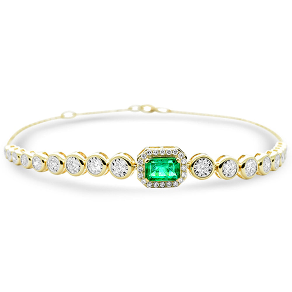 SPECIAL! 1.09ct G SI 14K Yellow Gold Diamond & Emerald Gemstone Bracelet 7" Long