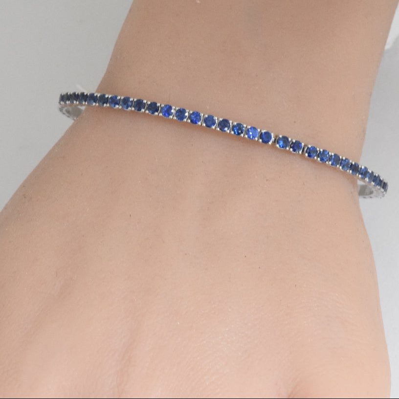SPECIAL!2.54ct G SI 14K White Gold Blue Sapphire Gemstone Flexible Bangle Bracelet 7" Long