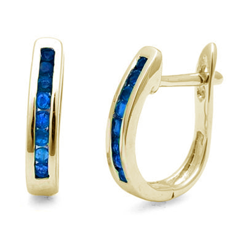 GEMSTONE CLOSEOUT! .23ct G SI 14K Yellow Gold J Hoop Natural Sapphire Earrings