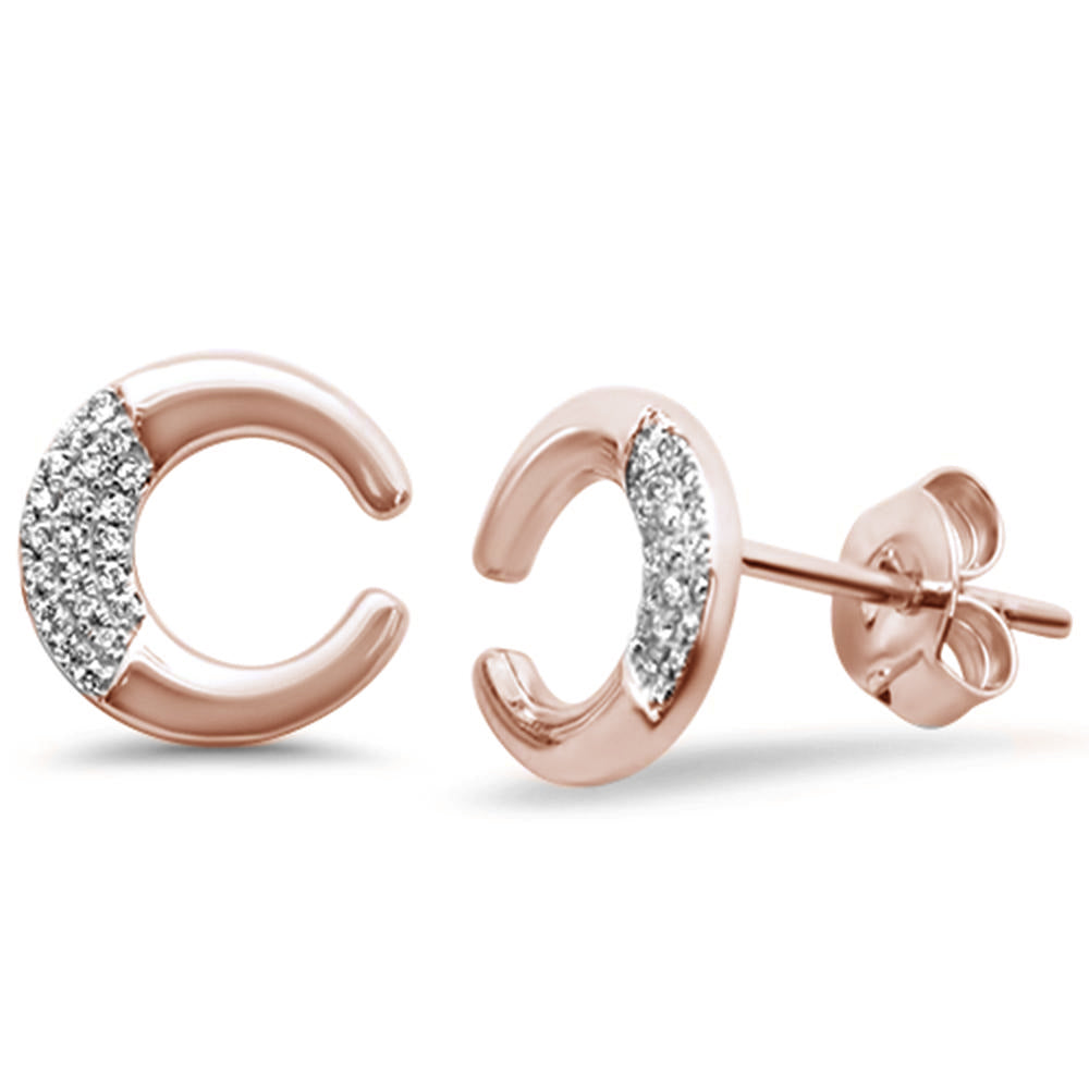 DIAMOND CLOSEOUT! .07ct 14K Rose Gold Crescent Moon Diamond Stud Earrings