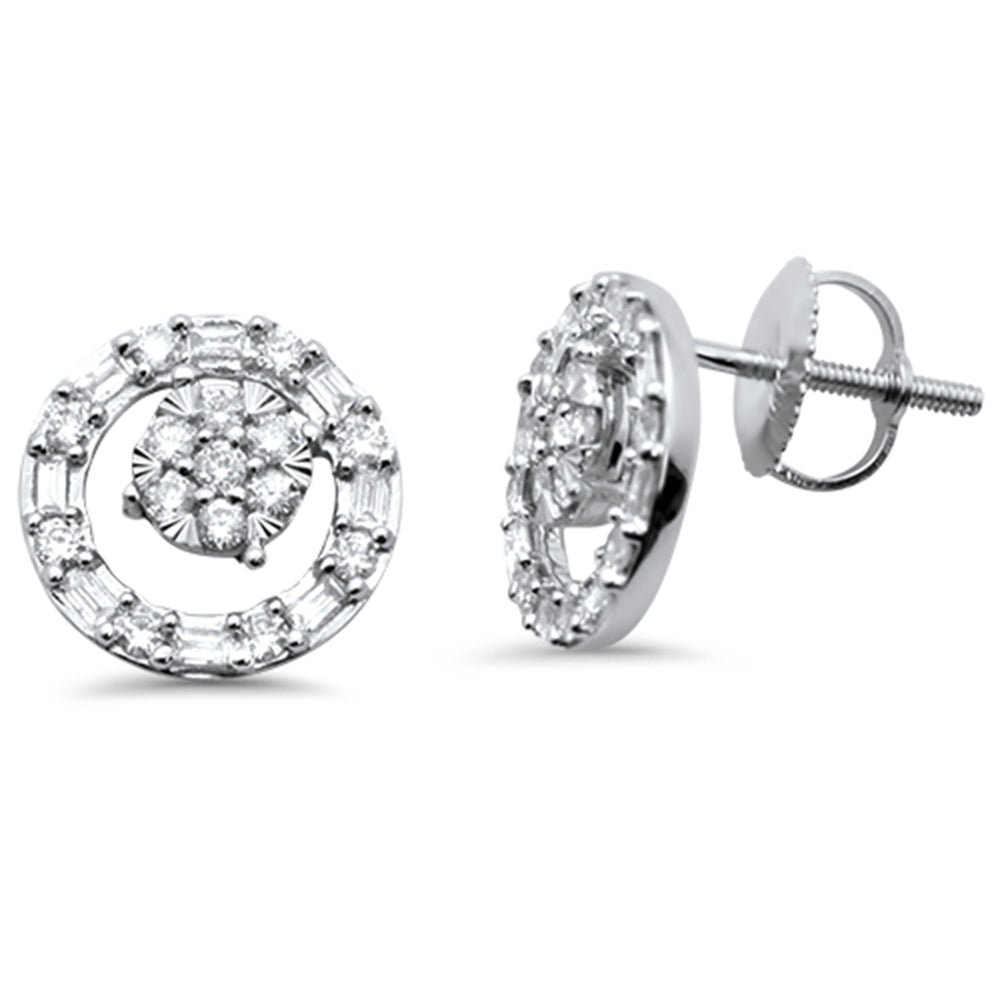 DIAMOND CLOSEOUT! .55ct G SI 14K White Gold Round & Baguette Diamond Circle Earrings