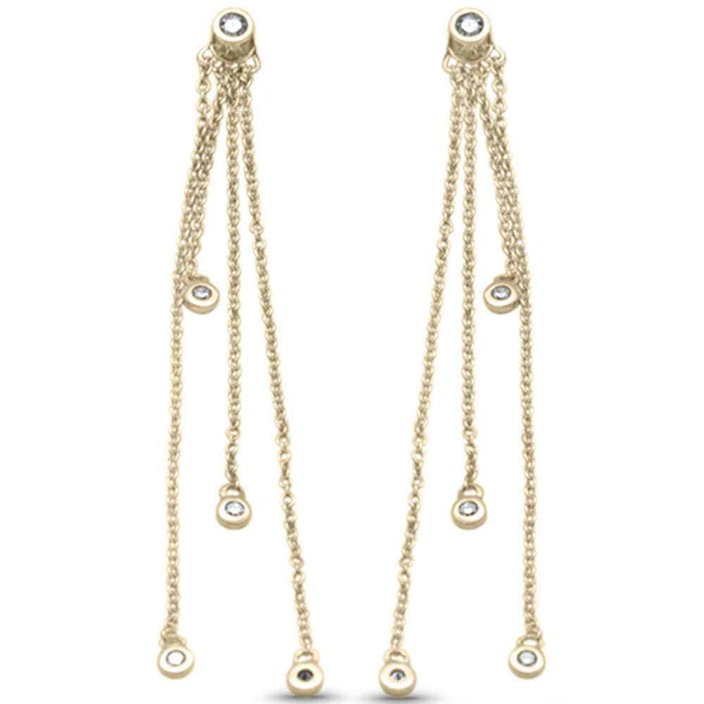 .15ct G SI 14K Yellow Gold Diamond Long Chain Dangling Earrings