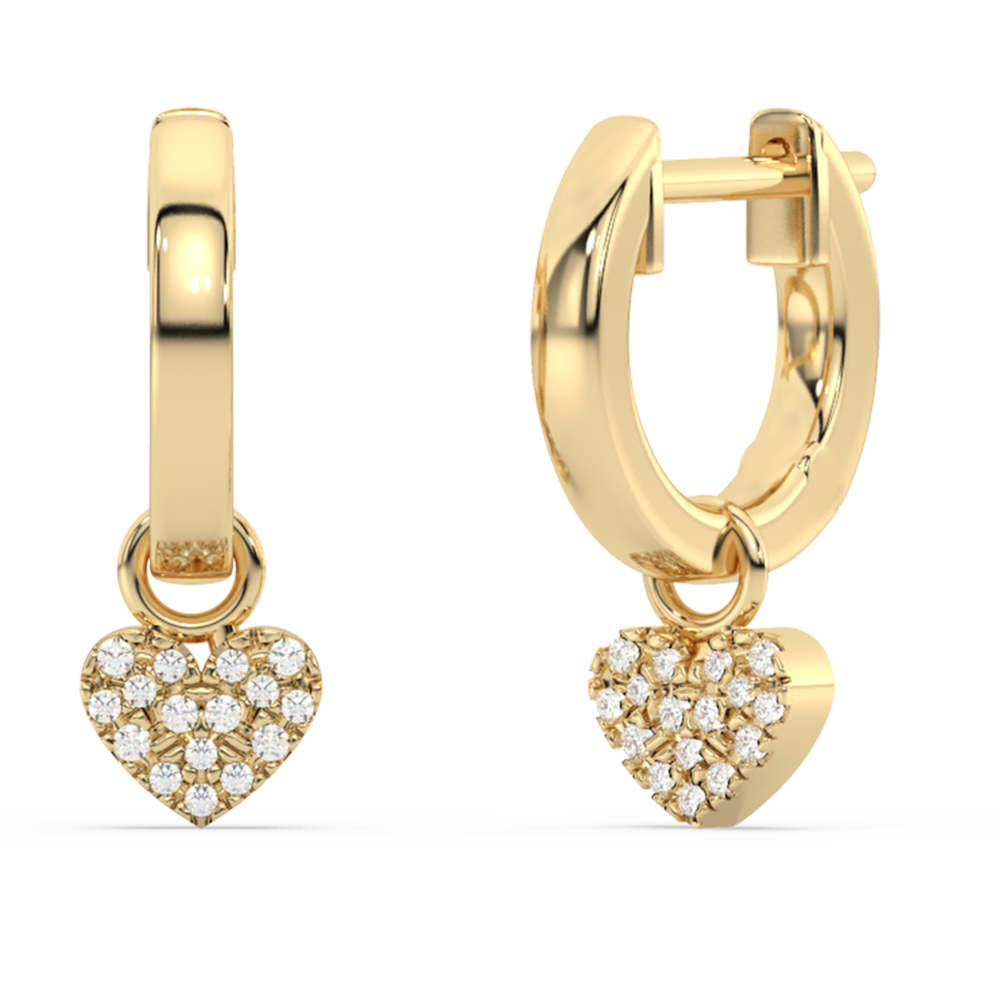 .10ct G SI 14K Yellow Gold Diamond Dangling Heart Hoop Earrings