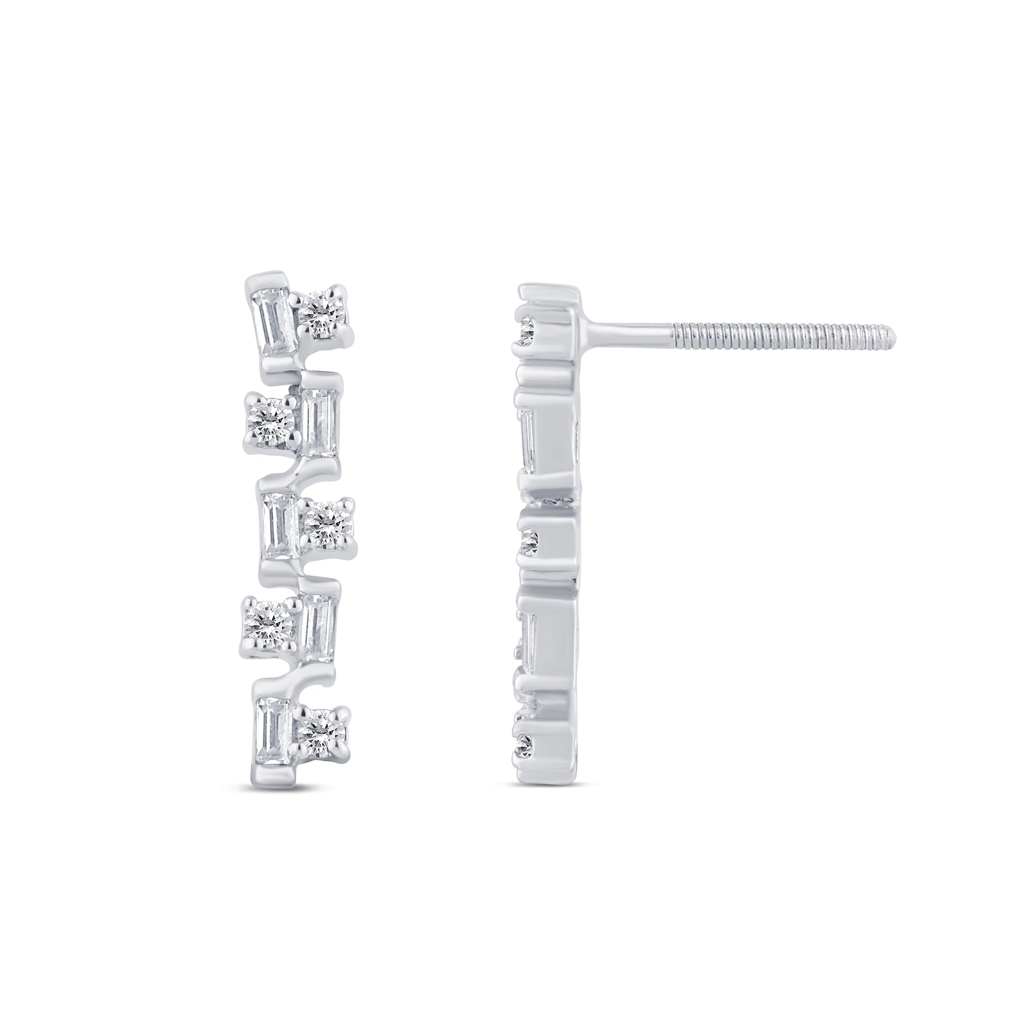 .20ct G SI 14K White Gold Diamond Round & Baguette Earrings