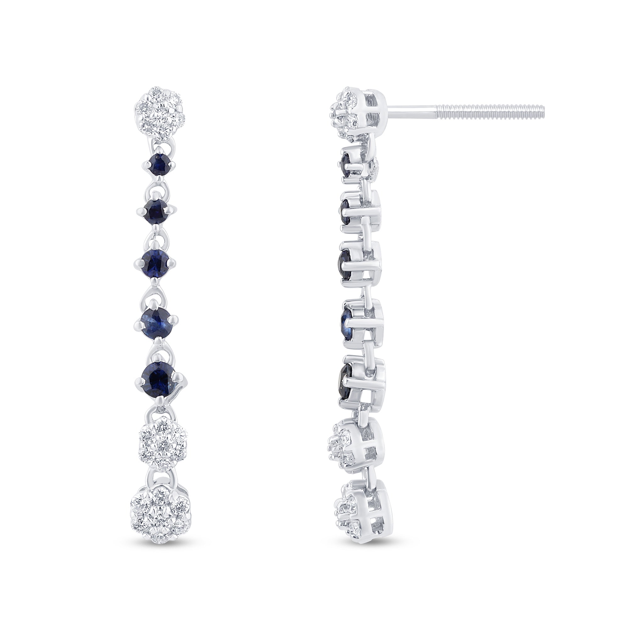 SPECIAL! .50ct G SI 14K White Gold Diamond & Blue Sapphire Dangling Earrings
