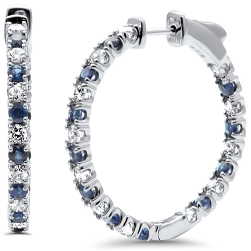 SPECIAL! 2.27ct G SI 14K White Gold Diamond Blue Sapphire Hoop Earrings