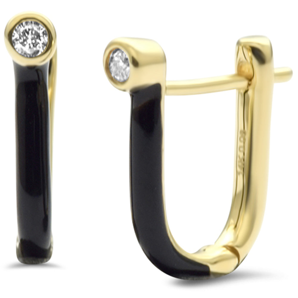 .08ct G SI 14K Yellow Gold Diamond & Black Enamel Hoop Earrings