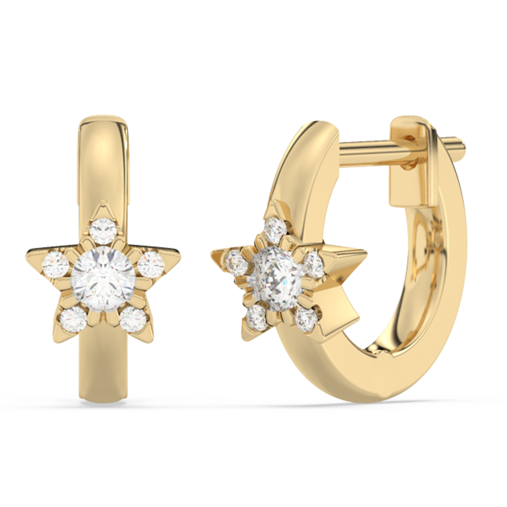 SPECIAL!.18ct G SI 14K Yellow Gold Diamond Star Petite Hoop Earrings