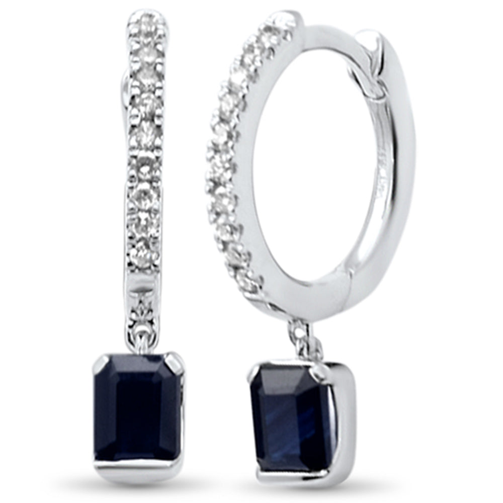 .69ct G SI 14K White Gold Diamond & Blue Sapphire Gemstone Hoop Dangling Earrings