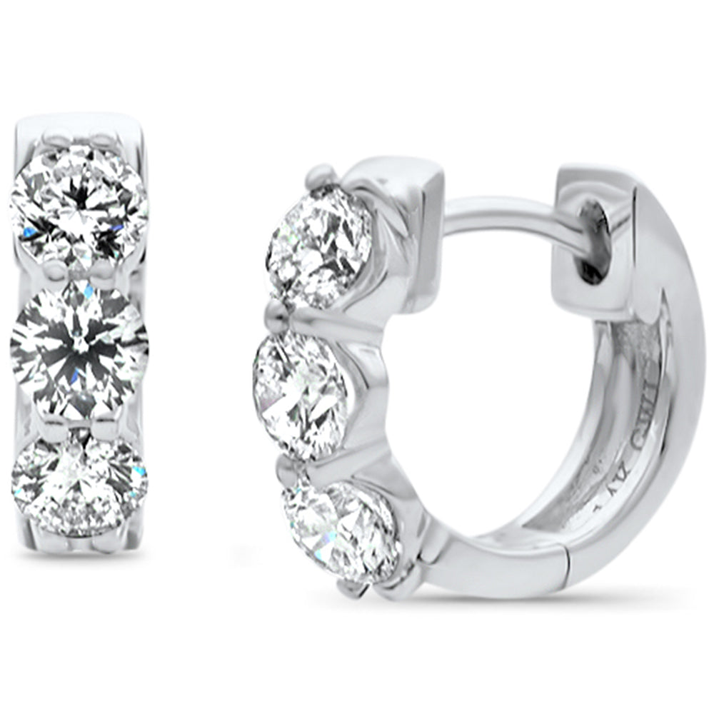 SPECIAL! 1.20ct G SI 14K White Gold Round Diamond 3-Stone Hoop Huggie Earrings