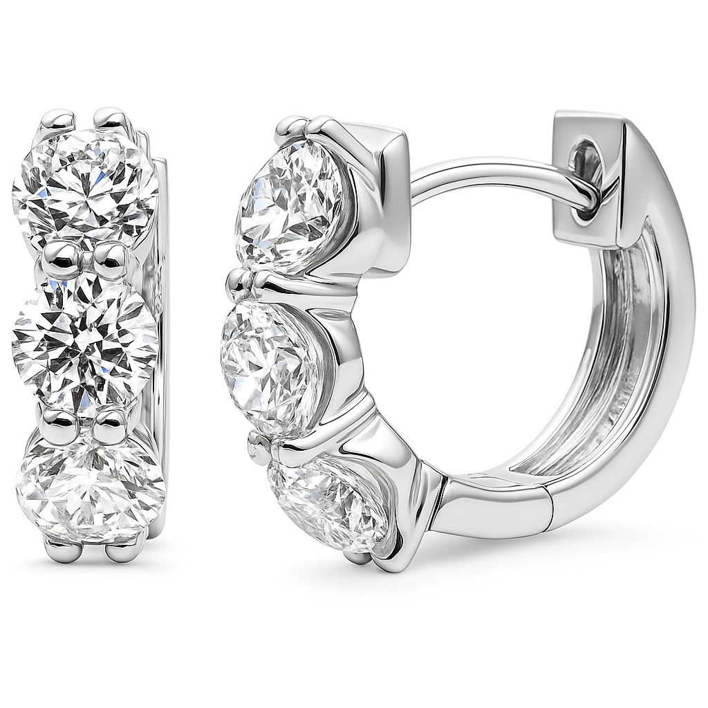 SPECIAL! 1.83ct G SI 14K White Gold Round Diamond 3-Stone Hoop Earrings