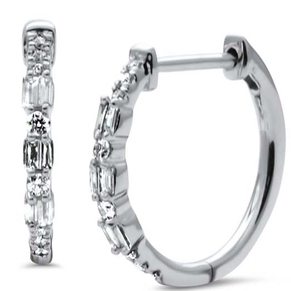 SPECIAL! .21ct G SI 14K White Gold Round & Baguette Diamond Hoop Earrings