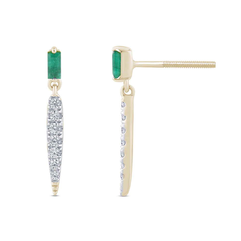 .28ct G SI 14K Yellow Gold Diamond & Emerald Gemstones Drop Earrings