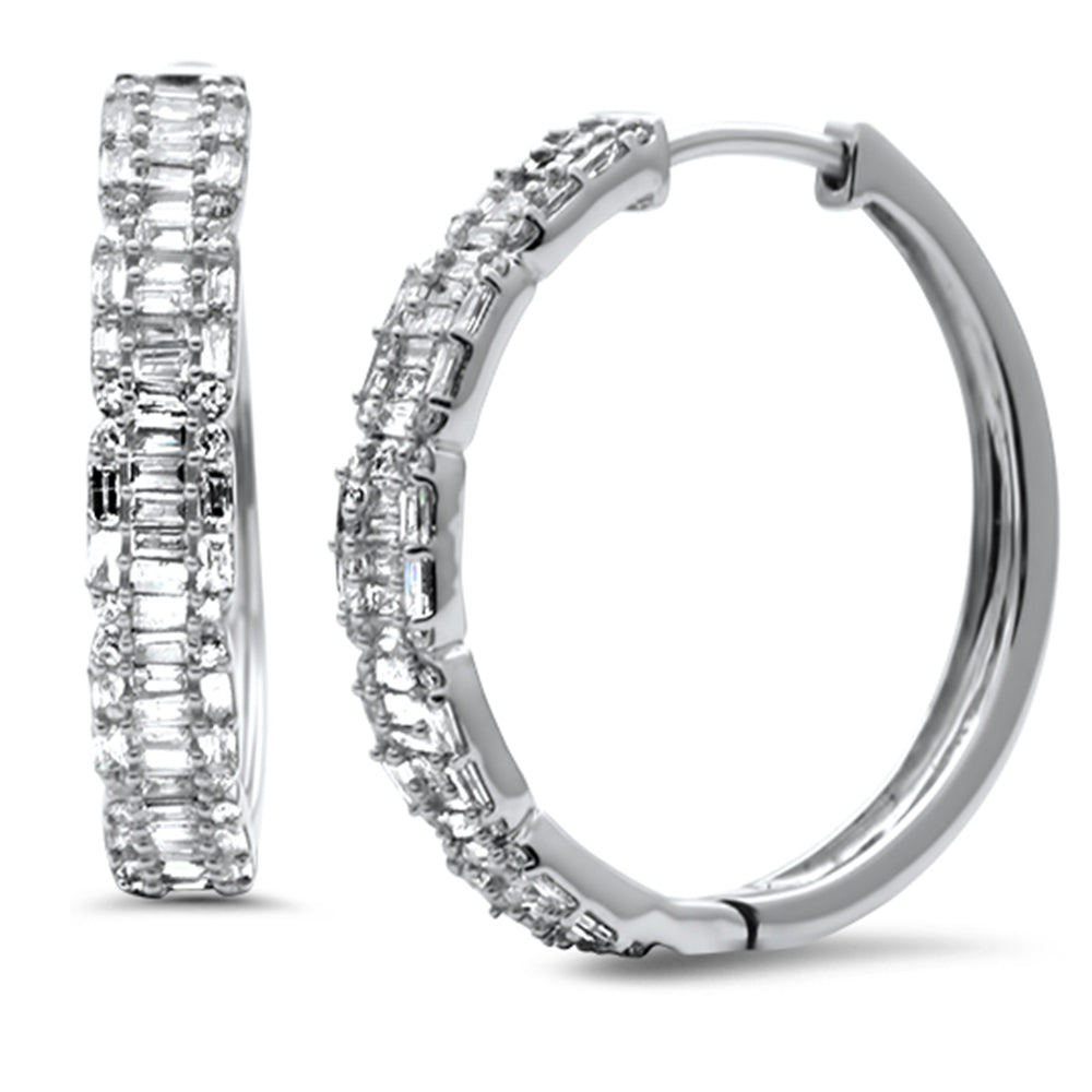 SPECIAL! .72ct G SI 14K White Gold Round & Baguette Diamond Hoop Earrings