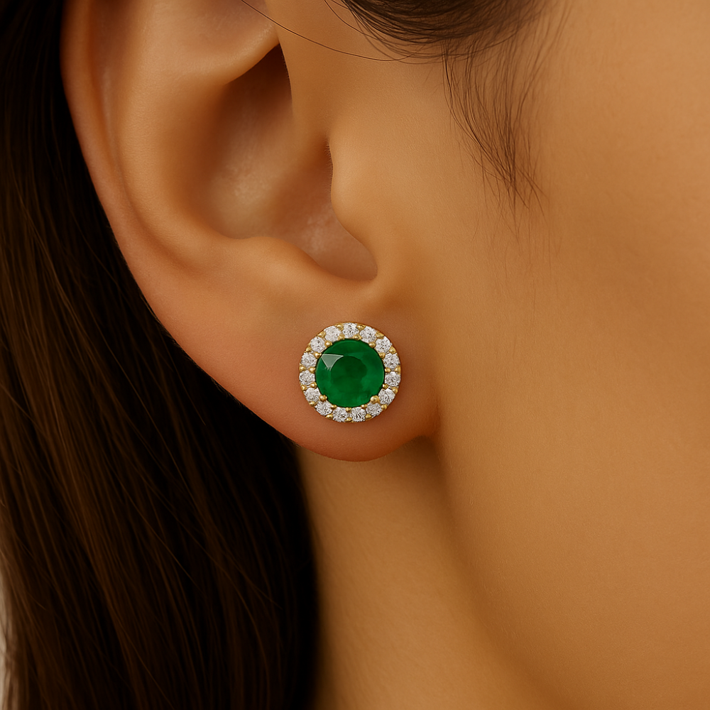 SPECIAL! .66ct G SI 14K Yellow Gold Diamond & Emerald Gemstone Earrings