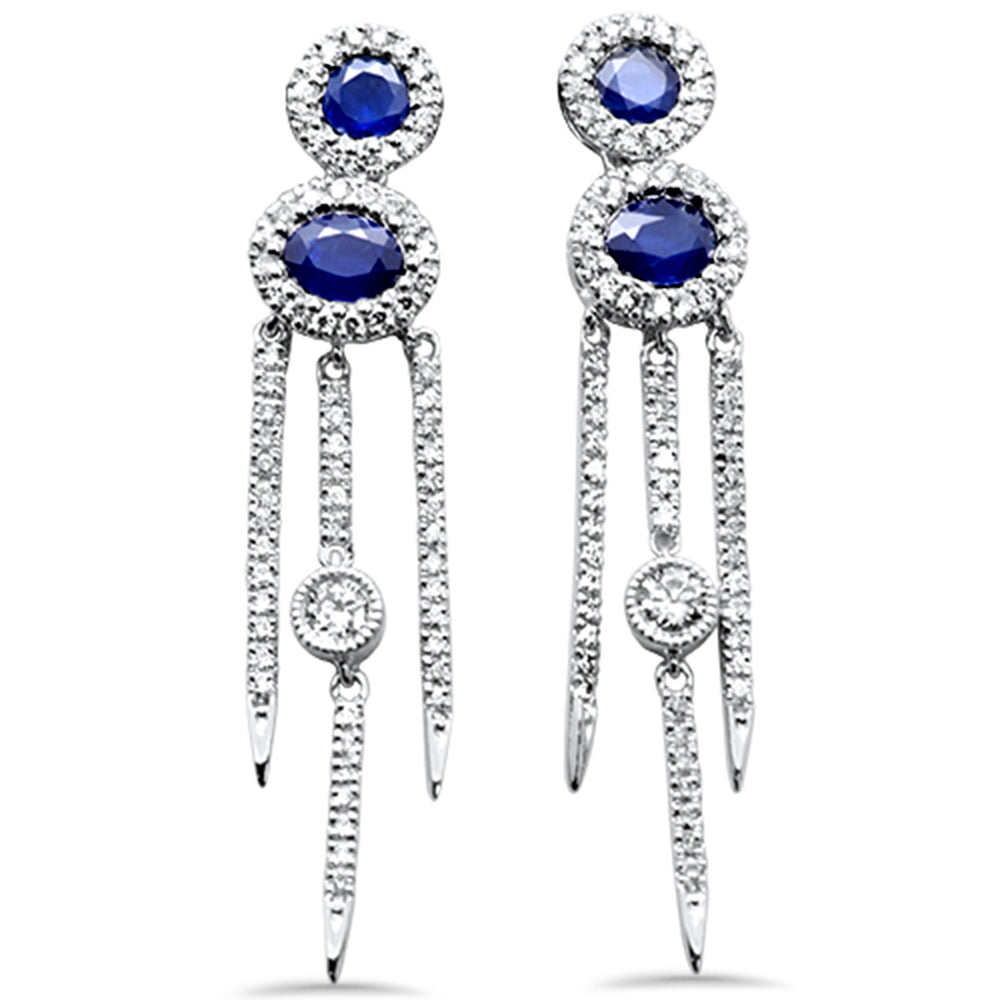 SPECIAL! 1.11ct G SI 14K White Gold Unique Diamond & Blue Sapphire Gemstones Drop Earrings