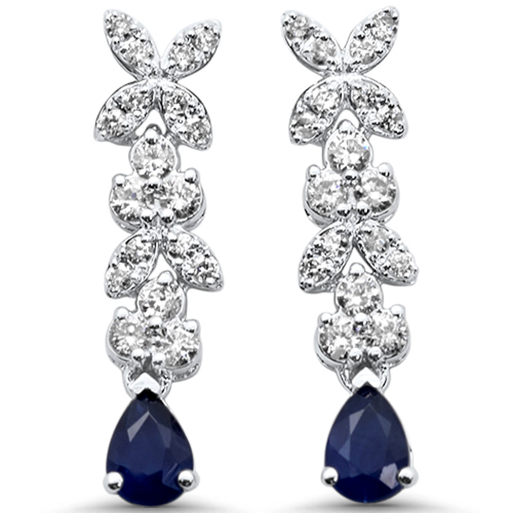 SPECIAL! .58ct G SI 14K White Gold Diamond & Blue Sapphire Gemstone Drop Earrings