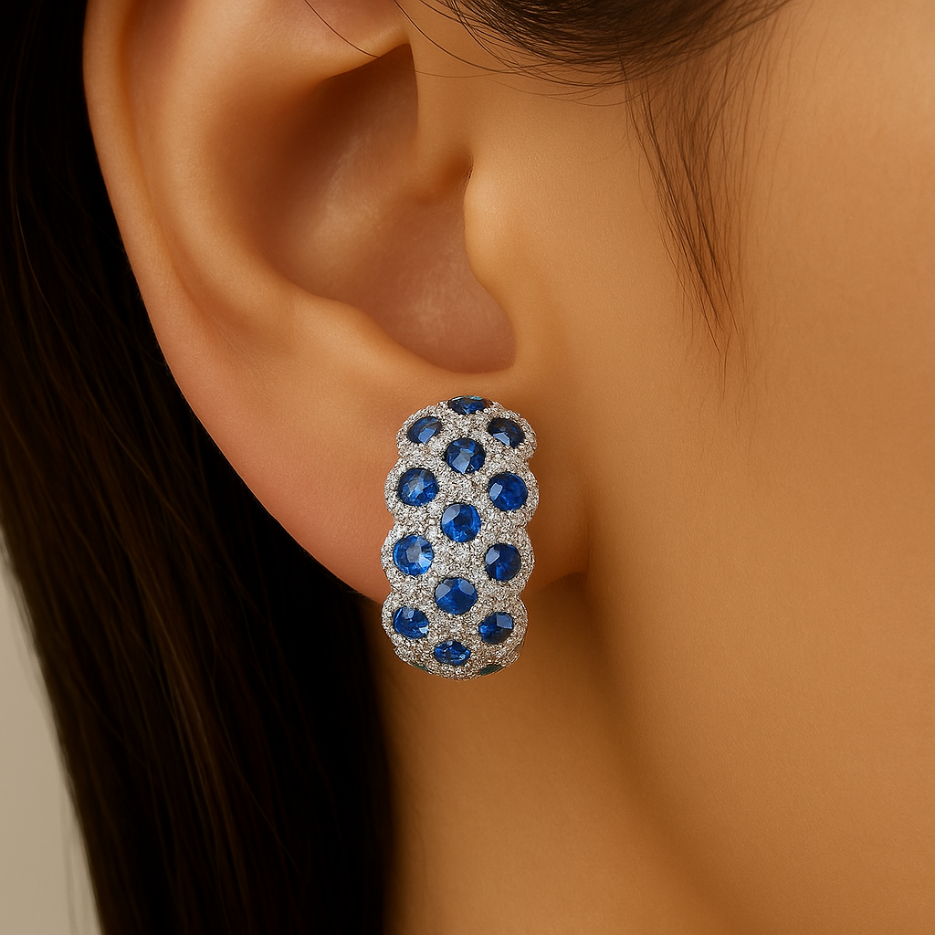 SPECIAL!1.94ct G SI 14K White Gold Diamond & Blue Sapphire Gemstone Dome Earrings