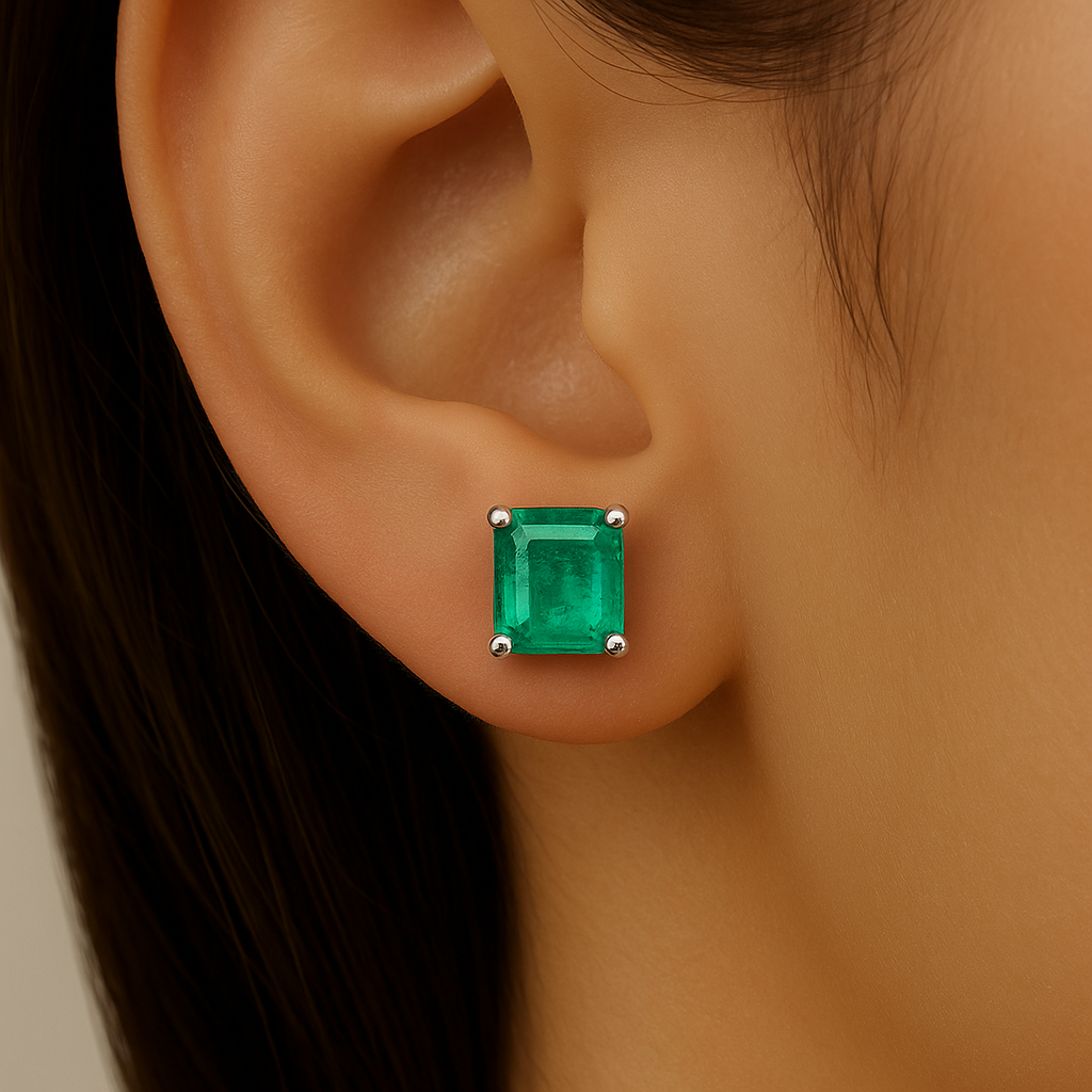 SPECIAL!3.10ct G SI 14K White Gold Emerald Gemstone Stud Earrings