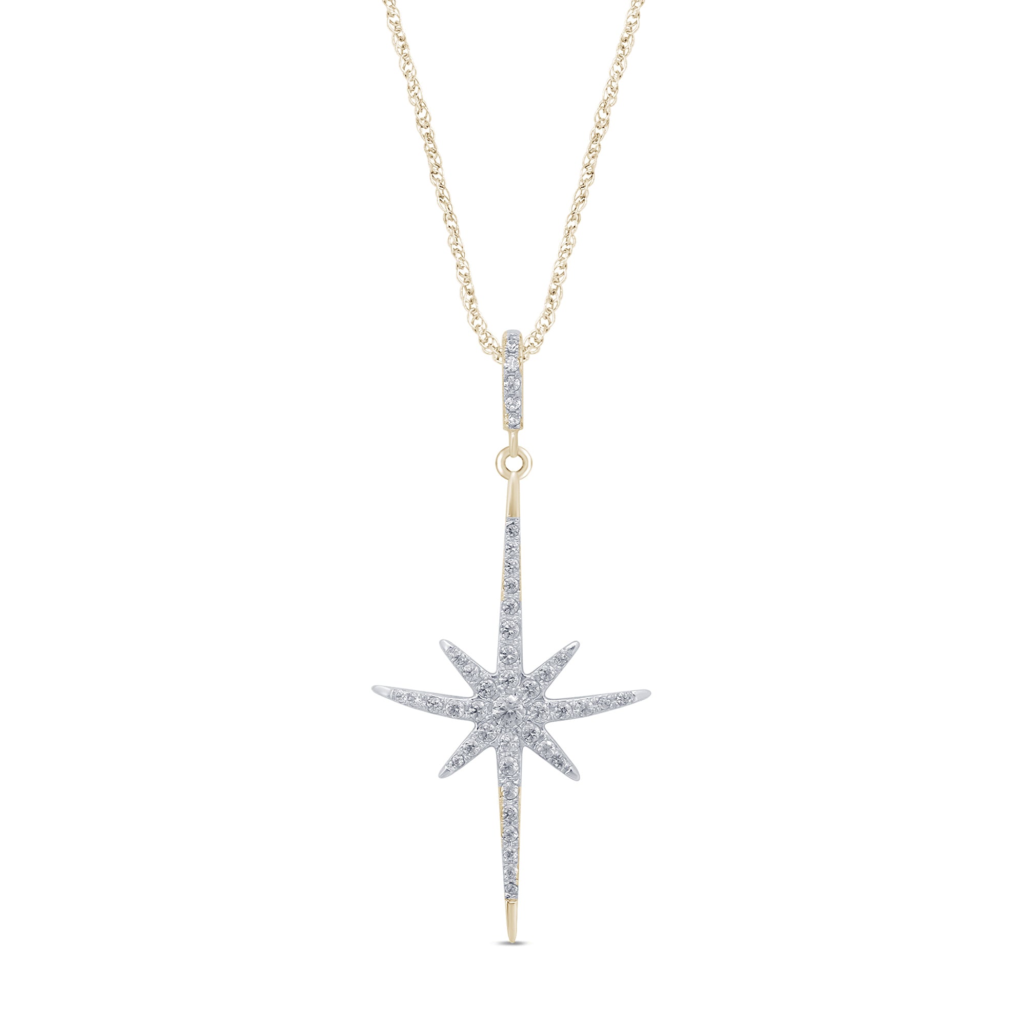DIAMOND CLOSEOUT! .20cts 14kt Yellow Gold Round Starburst Diamond Pendant Necklace 18" Long
