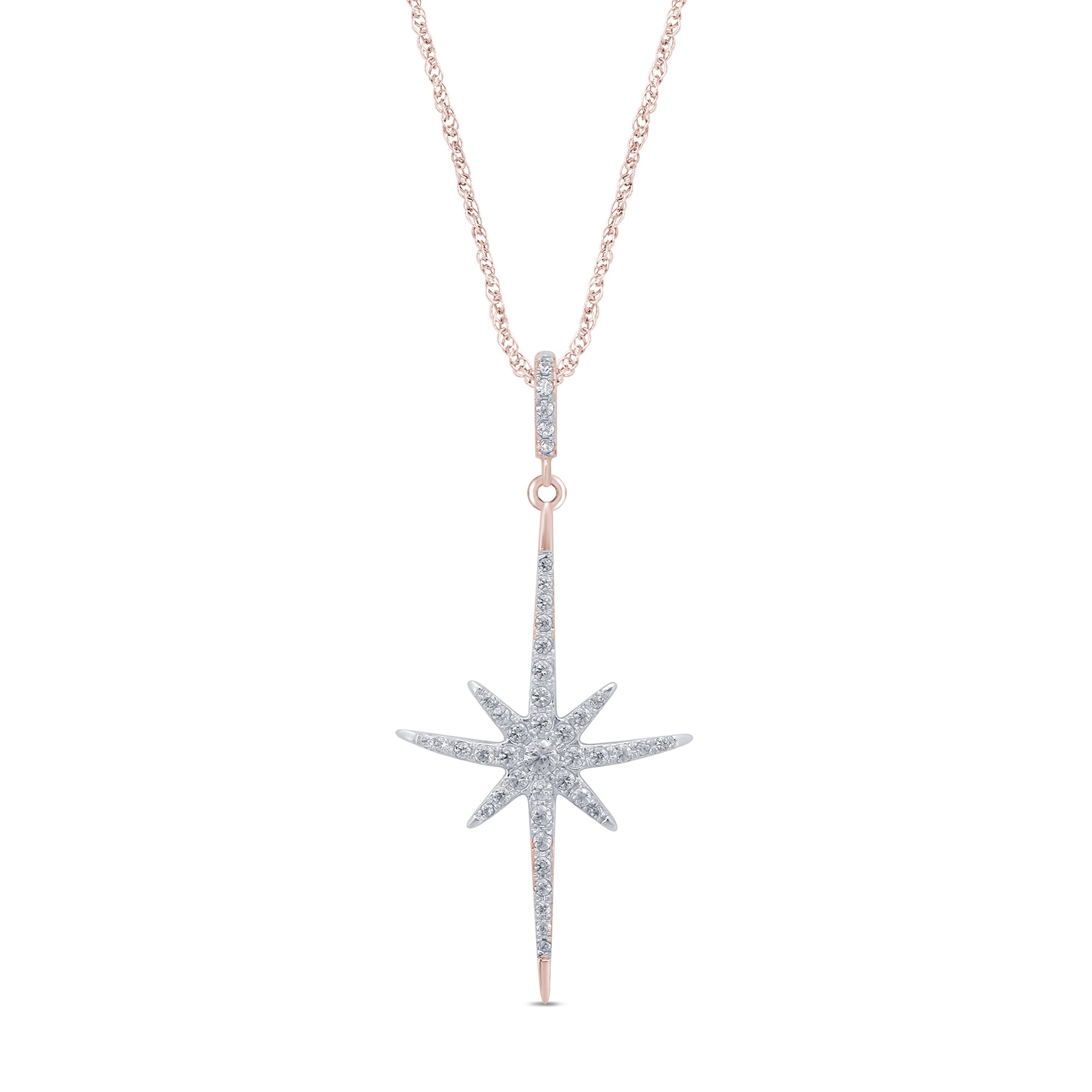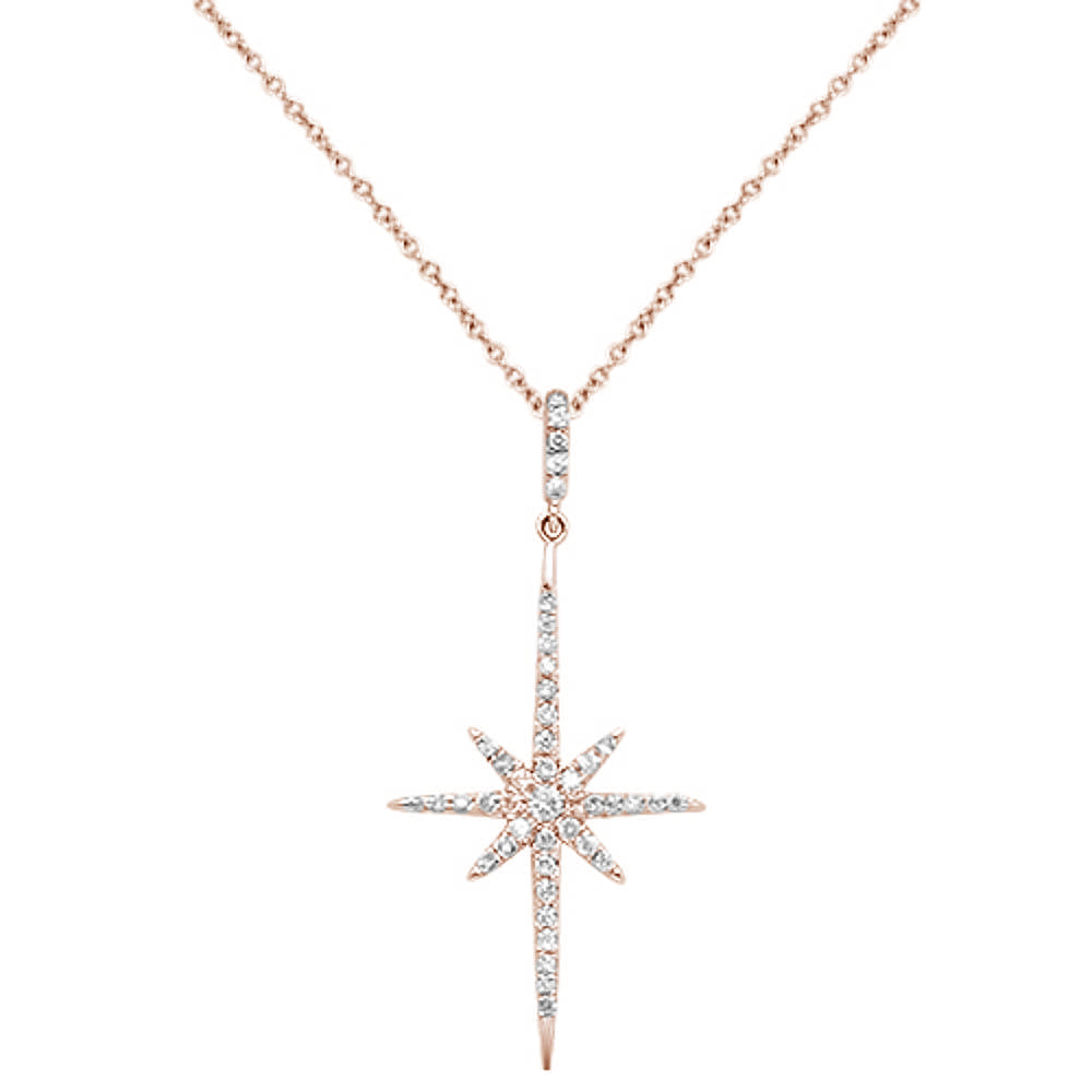 DIAMOND CLOSEOUT! .21ct 14K Rose Gold Diamond Starburst Pendant Necklace 18"