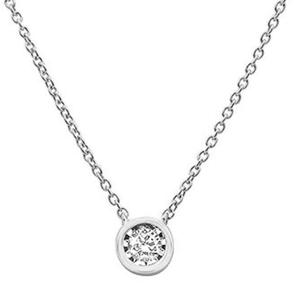 DIAMOND CLOSEOUT! .10ct 14k White Gold Diamond Round Solitaire Bezel Pendant Necklace 18"